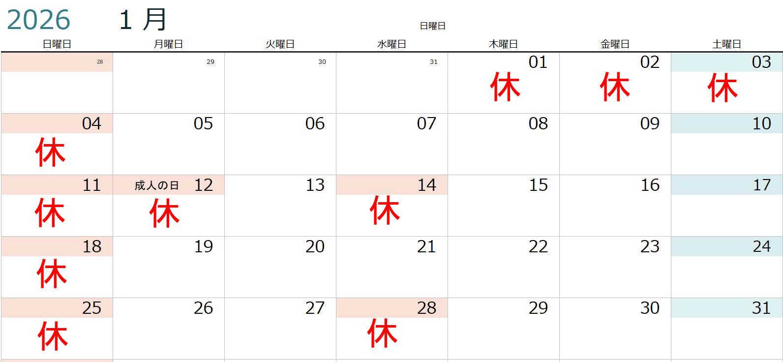 1月の診療日について
